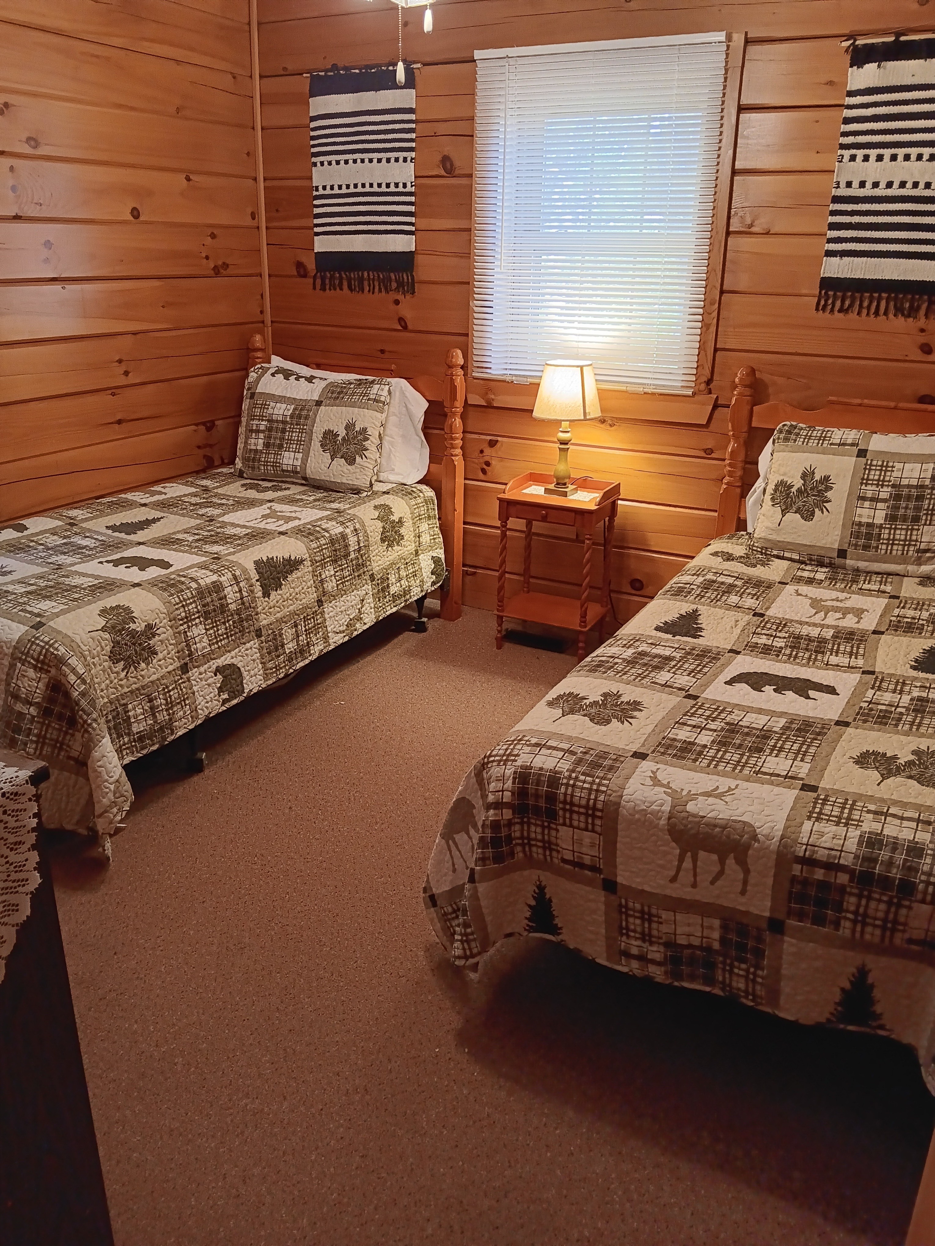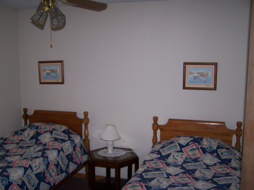 - Queen bed in one bedroom, two twin beds in other bedroom